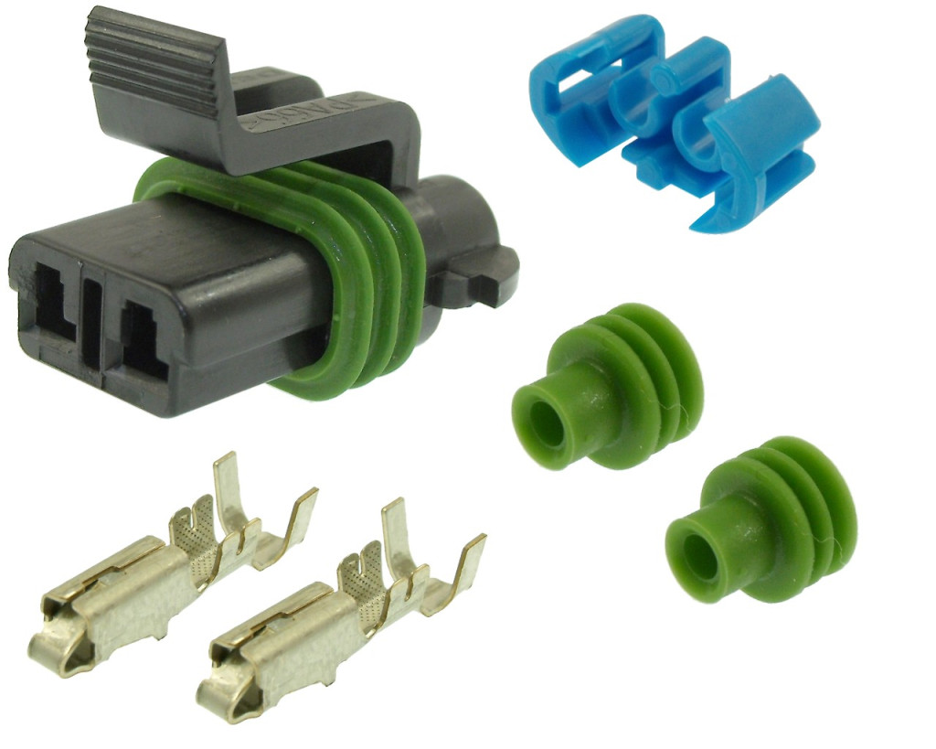 Delphi típúsú 2 pólusú apa csatlakozó szett. 2,5 mm2-es vezetékekig használható.