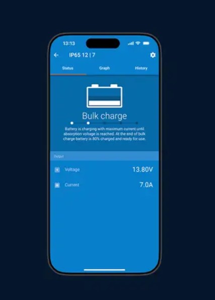 A "halott" akkumulátorok megmentője: Míg a legtöbb töltő nem ismeri fel a teljesen lemerült egységeket, a Blue Smart IP65 képes a 0V-ra kisütött akkumulátorok újratöltését is megkezdeni alacsony árammal. (amennyiben a cellák nem sérültek)