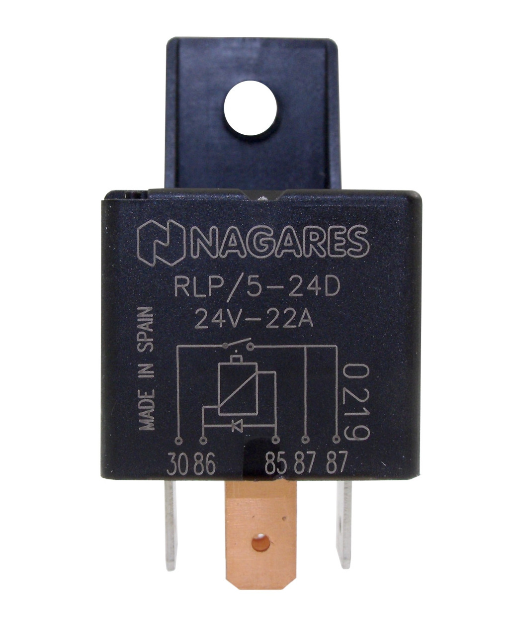 A Nagares RLP/5-24D egy megbízható és tartós autós relé, amely 24V-os rendszerekhez készült, és 22A terhelhetőséggel rendelkezik. A relé különlegessége, hogy a 30-as lábat egyszerre kapcsolja a két 87-es kimenethez, így egy relével két fogyasztó működtethető párhuzamosan.
