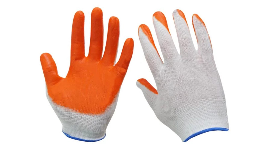 Szövet munkavédelmi kesztyű mártott gumibevonattal a csúszásmentesség érdekében.